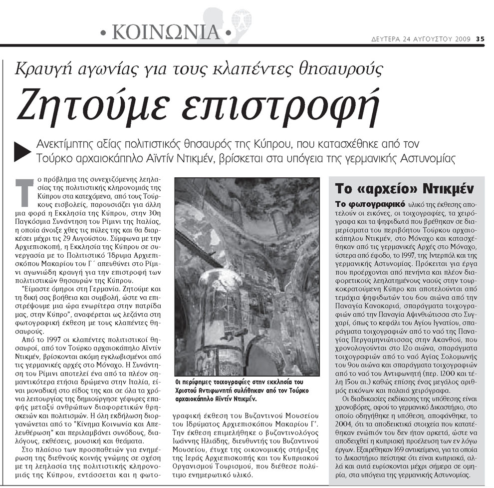 ΕΠΑΝΑΠΑΤΡΙΣΘΕΝΤΕΣ ΘΗΣΑΥΡΟΙ ΑΠΟ ΤΟ ΜΟΝΑΧΟ