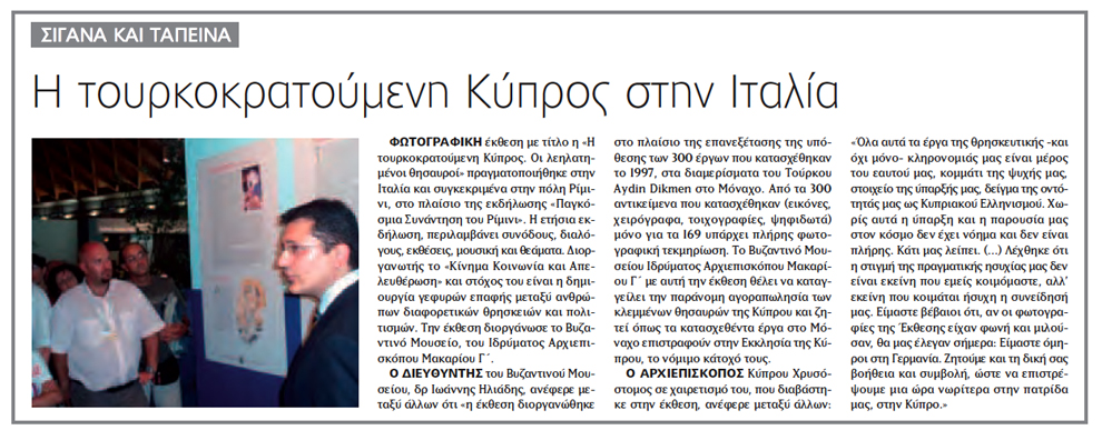 Φωτογραφική Έκθεση "Η τουρκοκρατούμενη Κύπρος στην Ιταλία. Οι λεηλατημένοι θησαυροί"