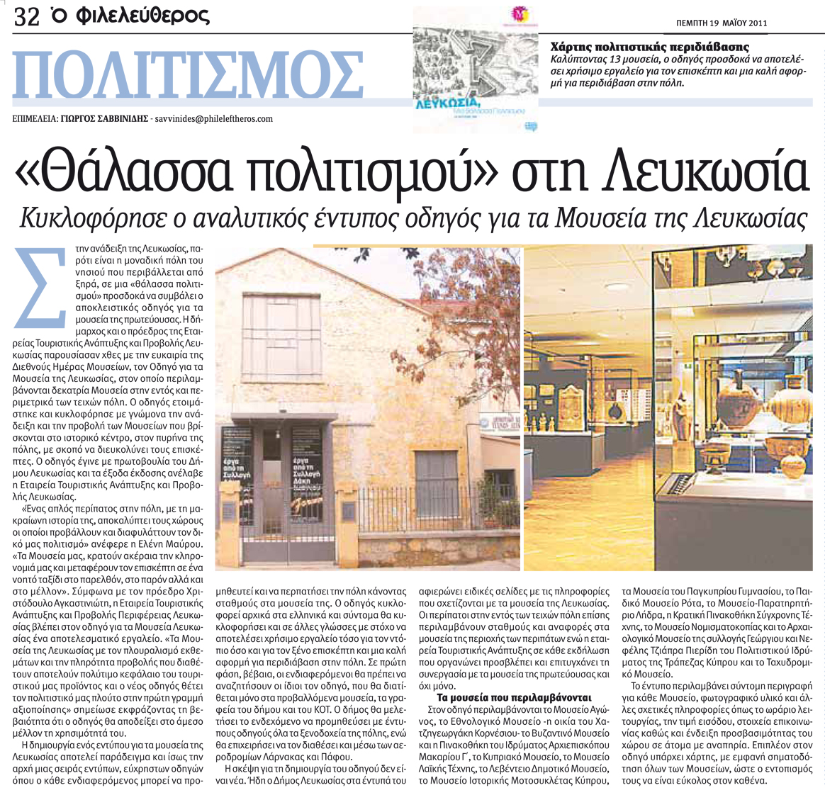 Με την ευκαιρία της Διεθνούς Ημέρας Μουσείων ο Δήμος Λευκωσίας και η Εταιρεία Τουριστικής Ανάπτυξης και Προβολής Λευκωσίας παρουσίασαν στις 18 Μαΐου 2011, τον Οδηγό για τα Μουσεία της Λευκωσίας, στον οποίο περιλαμβάνονται δεκατρία Μουσεία στην εντός και περιμετρικά των τειχών πόλη. Ο οδηγός ετοιμάστηκε και κυκλοφόρησε με γνώμονα την ανάδειξη και την προβολή των Μουσείων που βρίσκονται στο ιστορικό κέντρο, στον πυρήνα της πόλης, με σκοπό να διευκολύνει τους επισκέπτες.