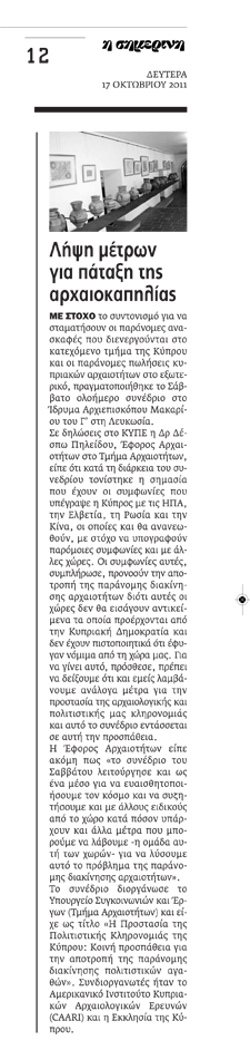 Κοινή προσπάθεια για την αποτροπή της παράνομης διακίνησης πολιτιστικών αγαθών". Σάββατο 15/10/11, Ώρα: 9.00 - 18.00. Αίθουσα Τελετών Ιδρύματος Αρχιεπισκόπου Μακαρίου Γ΄.