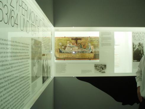 Ένα από τα σημαντικότερα εκθέματα της έκθεσης ανήκει στη θεματική ενότητα της Κύπρου. Πρόκειται για την εικόνα "Ο Επιτάφιος Θρήνος" των μέσων του 19ου αιώνα, έργο μαθητών του Κρητικού ζωγράφου Ιωάννη Κορνάρου, που προέρχεται από τις κατεχόμενες περιοχές της Κύπρου. Η εικόνα αυτή, προϊόν αρχαιοκαπηλίας, βρέθηκε ανάμεσα σε άλλες αρχαιότητες το 1979 στην οικία του αυστριακού Υπάτου Αρμοστή των Ηνωμένων Εθνών στην Κύπρο για τους πρόσφυγες, πρίγκηπα Alfred zur Lippe. Η εικόνα παραχωρήθηκε για τους σκοπούς της έκθεσης από το Βυζαντινό Μουσείο του Ιδρύματος Αρχιεπισκόπου Μακαρίου Γ’.
