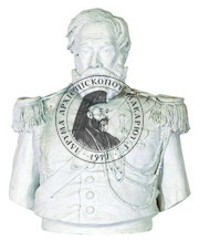 | Τεχνική: γύψινο πρόπλασμα της μπρούτζινης προτομής στο μνημείο του στη Λόφου |