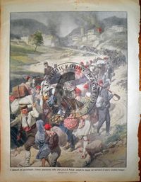 | Provenance: Insert of the newspaper «La Domenica del Corriere», year XV, Milan, 1913, back cover. I miracoli del patriottismo: l'intera popolazione della città greca di Melnik emigra in massa per sottrarsi al nuovo dominio bulgaro. Donated by Pavlos Kyprianou | |