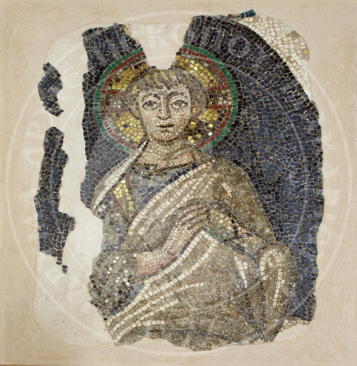 | Τεχνική: Ψηφιδωτό σε ασβεστοκονίαμα: Γυαλί, μάρμαρο, κονίαμα | |
