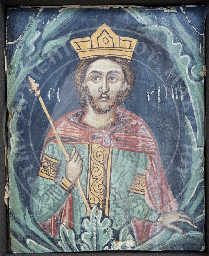 Έργο: Βασιλιάς Εσρώμ - Σπάραγμα αποτοιχισμένης τοιχογραφίας  από την παράσταση της Ρίζας Ιεσσαί
