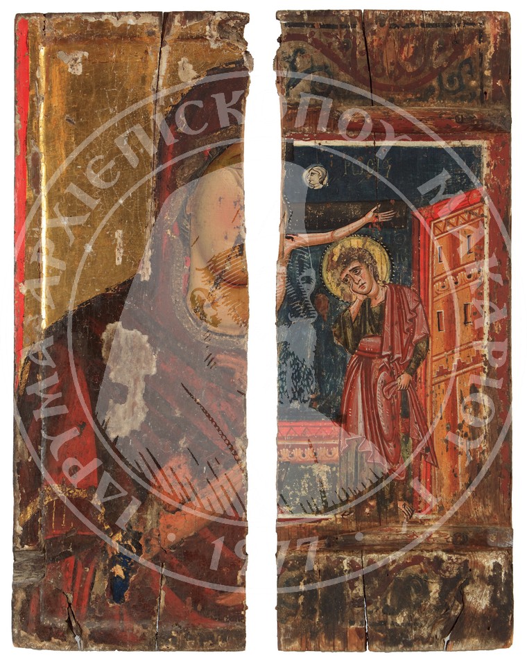 Title: Bilateral icon (fragment): Virgin Mary and Crucifixion