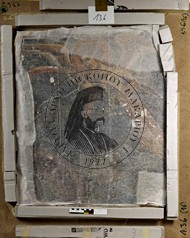 Title: Fragments of wall paintings from the composition of the Last Judgement: Trumpeter angel |
