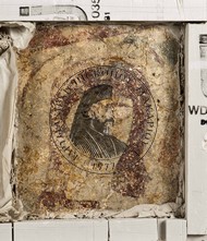| Provenance: From the church of Saint Solomoni in Komi tou Gialou. The fresco fragment has been stolen by Turkish smugglers after the Turkish invasion and occupation of Northern Cyprus in 1974. It was found in 1997 in the appartments of the Turk Aydin Dikmen in Munich and was confiscated. After a long trial in the Court of Munich it was repatriated from Munich (Germany) in November 2013 | |