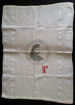 Έργο: Λινή πετσέτα με κόκκινο μονόγραμμα Τ |
