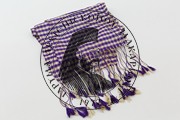 Title: Silky, purple striped belt with fringing |