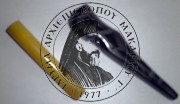 Title: Two cigarette's pipes: 1. Black with shoe shape and 2. normal, alabaster |