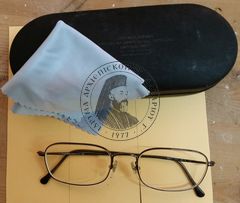 Title: Glasses, case and handkerchief. They were purchased from the optical house of Jim Kounnas. |